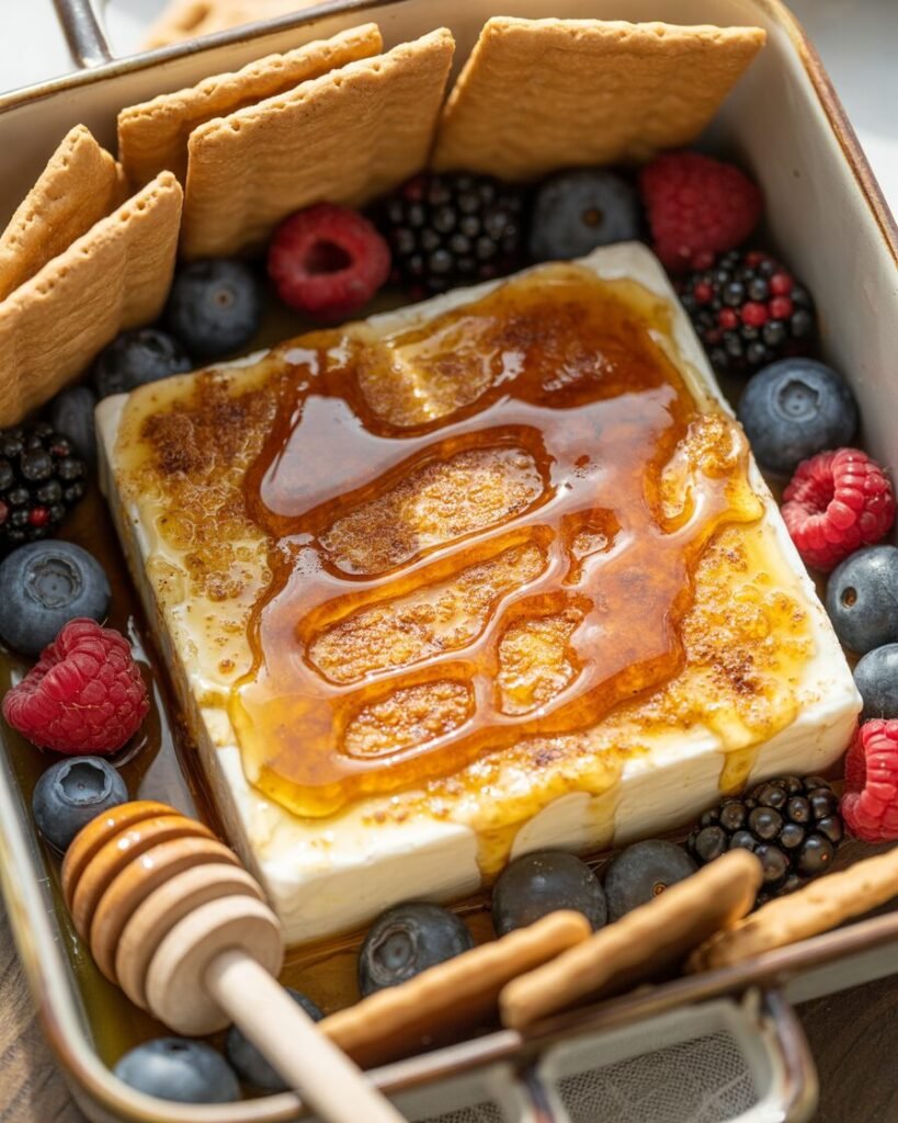 You pop a block of feta in the oven until it’s golden and soft, then drizzle it with honey and top it with macerated berries. Serve it with graham crackers or shortbread cookies for scooping. The sweet-savory combo hits different on a hot summer evening—it’s sophisticated without being pretentious, which is exactly my vibe.