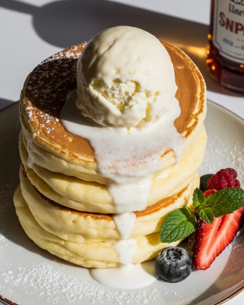 These Japanese-style soufflé pancakes became viral for good reason—they’re absurdly fluffy, incredibly photogenic, and surprisingly achievable at home. When you top them with ice cream and watch it slowly melt into all those jiggly layers, you understand why millions of people freaked out over them.