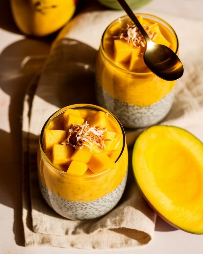 If you’re looking for something a little lighter and a little more tropical, this is your answer. Chia pudding sounds fancier than it is, and the mango-coconut combo tastes like a vacation.