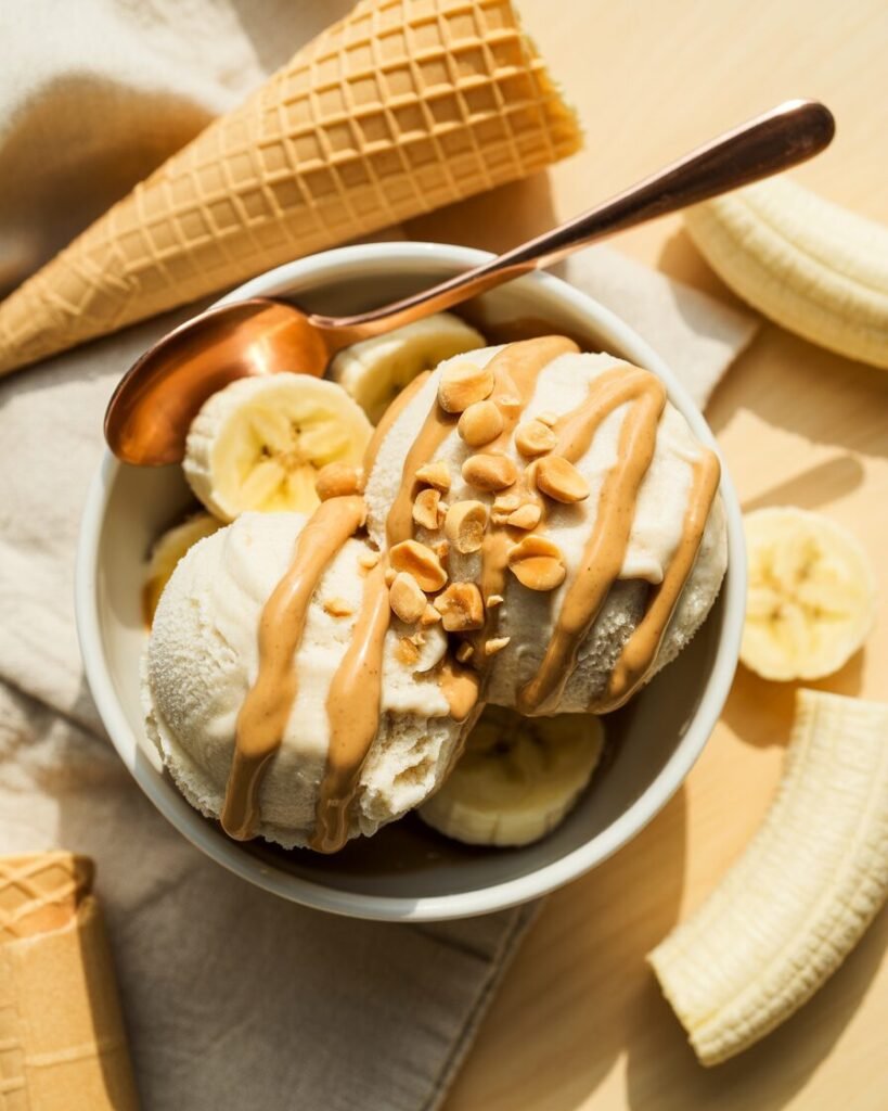 Slice bananas, freeze them solid (at least four hours), then blend until completely smooth. It takes a bit of patience with the blender, but the result is creamy, naturally sweet, and genuinely satisfying. Add mix-ins before the final blend. Eat immediately for soft-serve consistency or freeze for another hour for a firmer scoop.