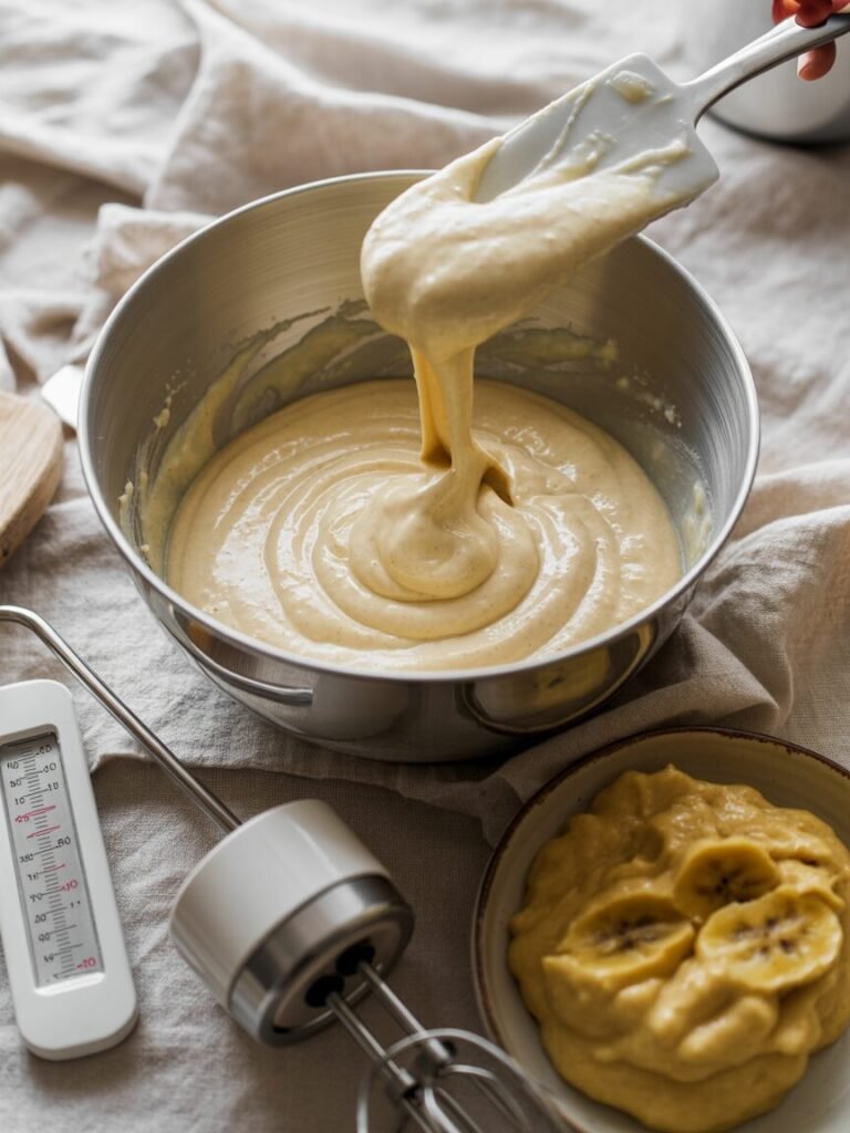 - Batch 2: Over‑ripe bananas in batter added water; center set late and tasted muddy. Fix: ripe (not brown) banana at 120 g for cleaner flavor.