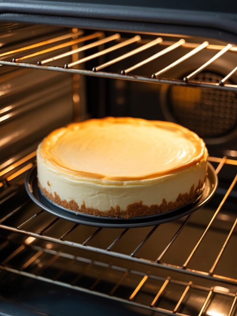 - Gentle cool: Turn off the oven, crack the door, and let the cheesecake cool inside for 1 hour to minimize cracks.