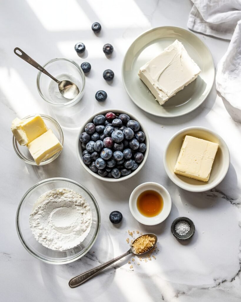 | Yield | Butter | Cream Cheese | Powdered Sugar | Blueberries |