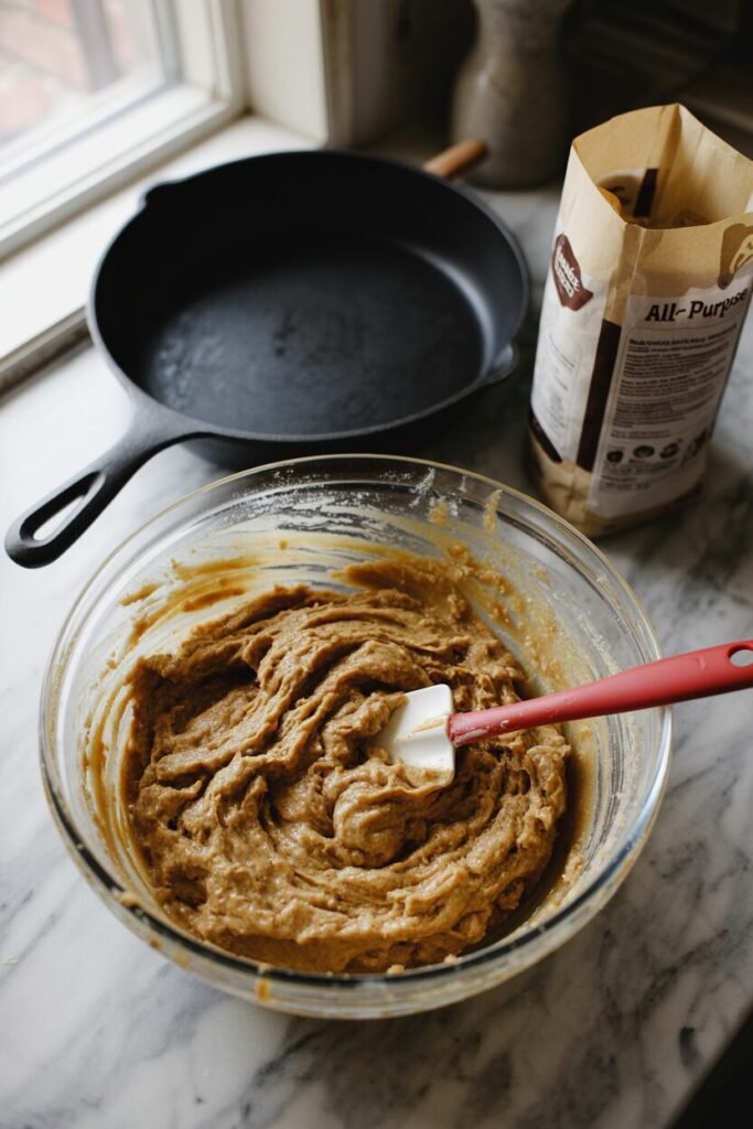 Preheat oven to 180°C (350°F). Place the skillet in the oven while it preheats for 5–10 minutes—this ensures even baking. Remove from oven and set aside.