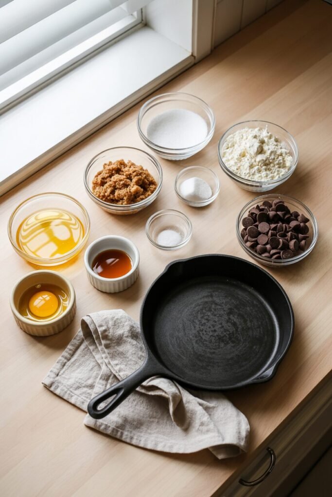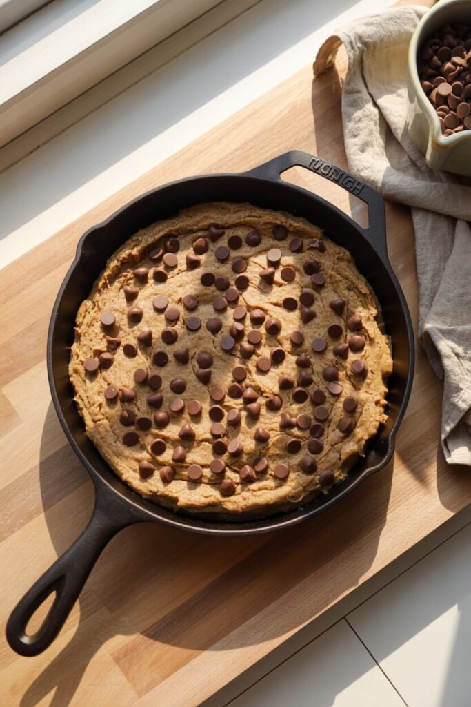 Pour dough into the preheated skillet and smooth the top. Sprinkle remaining chocolate chips over the surface. Bake for 18–22 minutes, until edges are golden but the center is still soft. - Cool and Serve: