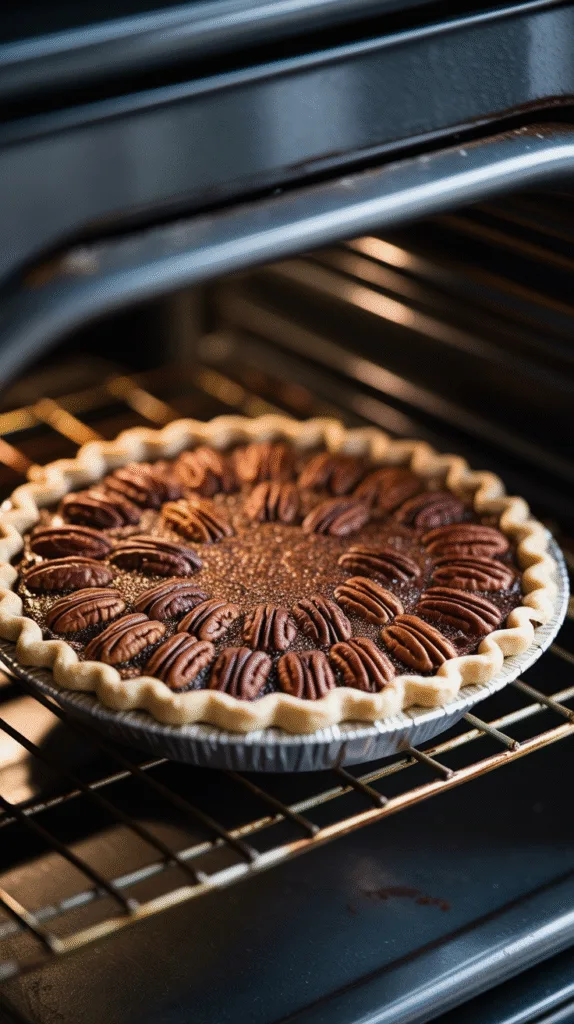 Spread pecans evenly in the cooled crust. Pour filling over, ensuring nuts are mostly covered. - Bake: