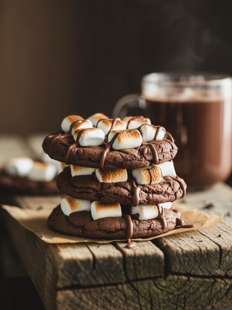 These cookies are like drinking hot cocoa, but in cookie form. They’re rich, chocolatey, and topped with melted marshmallows for that authentic hot chocolate experience. The base is a fudgy chocolate cookie that’s soft in the center with slightly crispy edges.