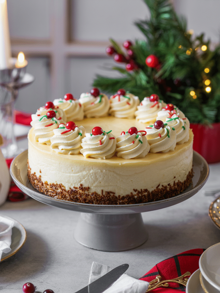 Want to seriously impress your guests? A Christmas cheesecake is the way to go. This festive dessert combines creamy white chocolate cheesecake with holiday sprinkles, cranberry jam, or white chocolate mousse for a showstopper that tastes as good as it looks. It’s rich, decadent, and screams celebration.