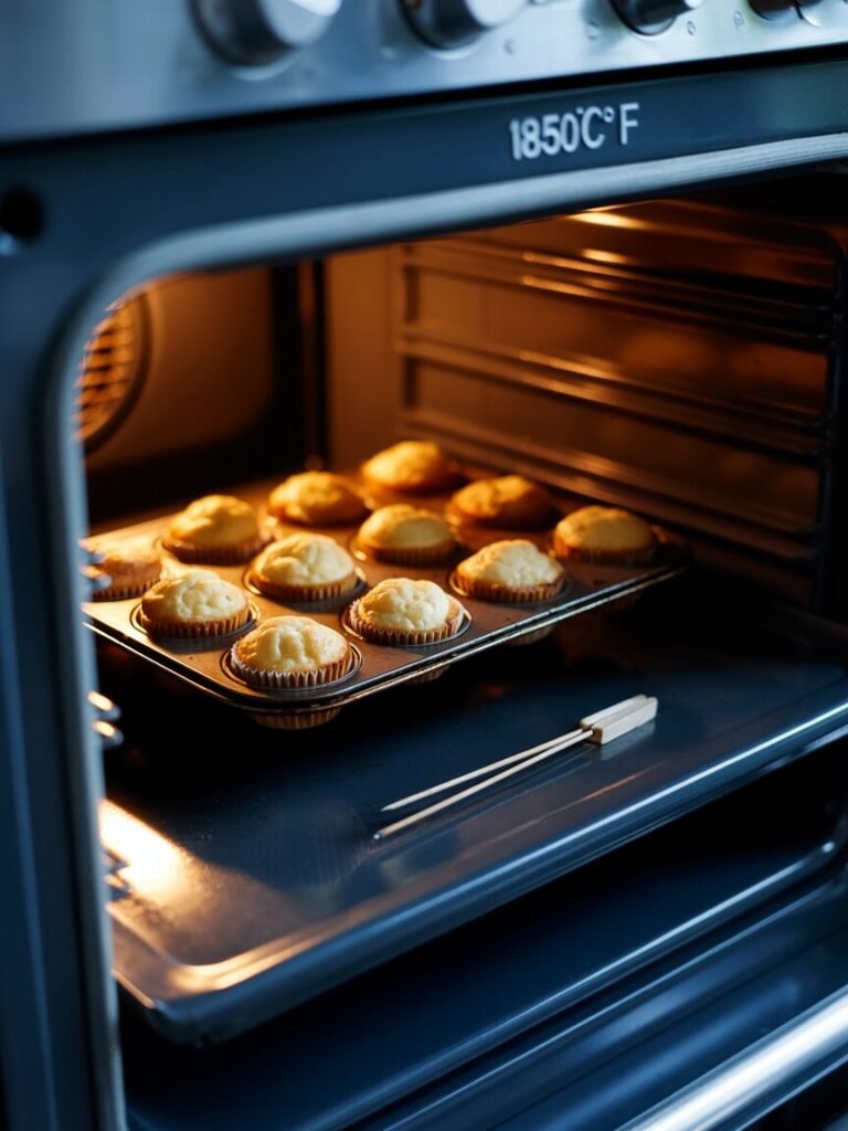 - Bake: 12 minutes at 180°C (350°F). Muffins should be pale golden at the center, deep golden at the edges, and a skewer comes out clean. The sound will be light and crisp when tapped.