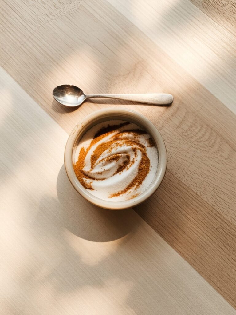 - Prep Topping:Â Mix 20g sugar and 3g cinnamon in a small bowl. Set aside.