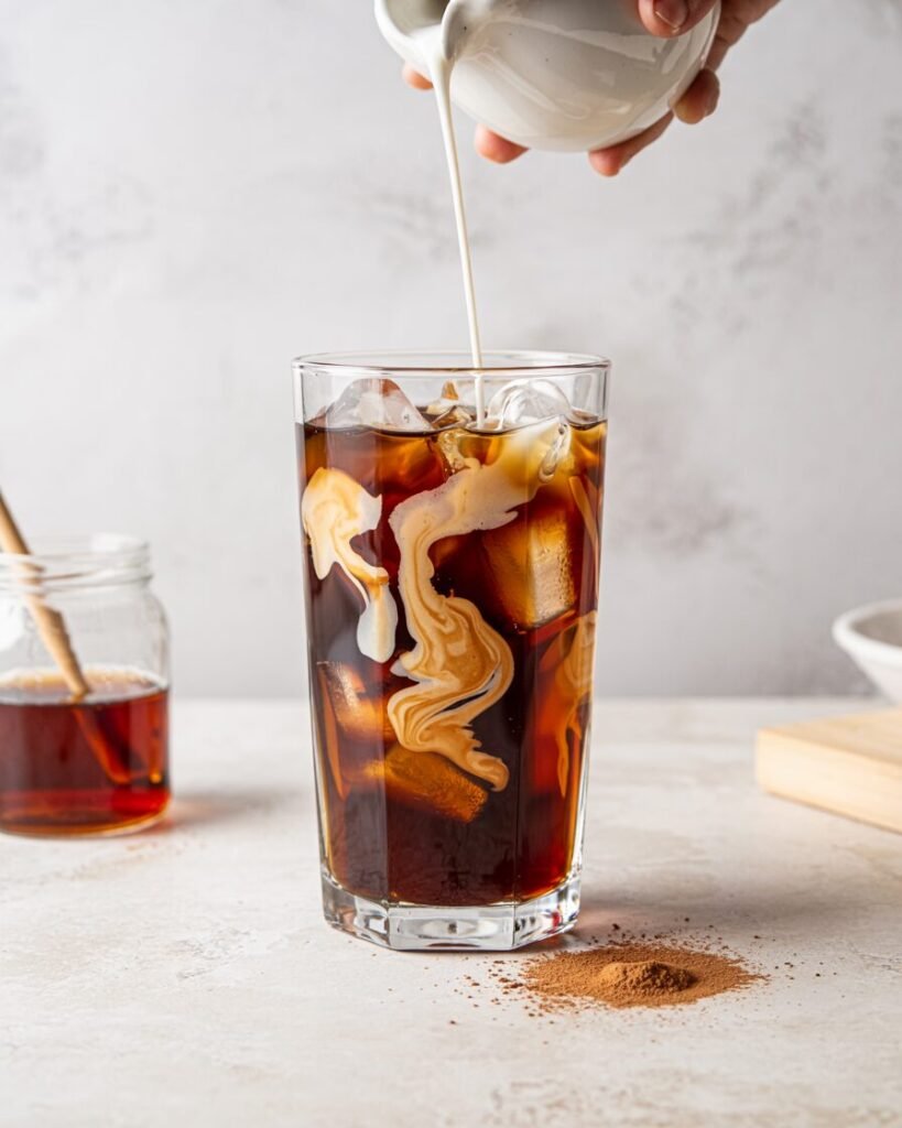Add a tablespoon of cream or top it with a simple cold foam. A tiny bit of cream cheese foam gives the closest “iced cinnamon roll” effect.