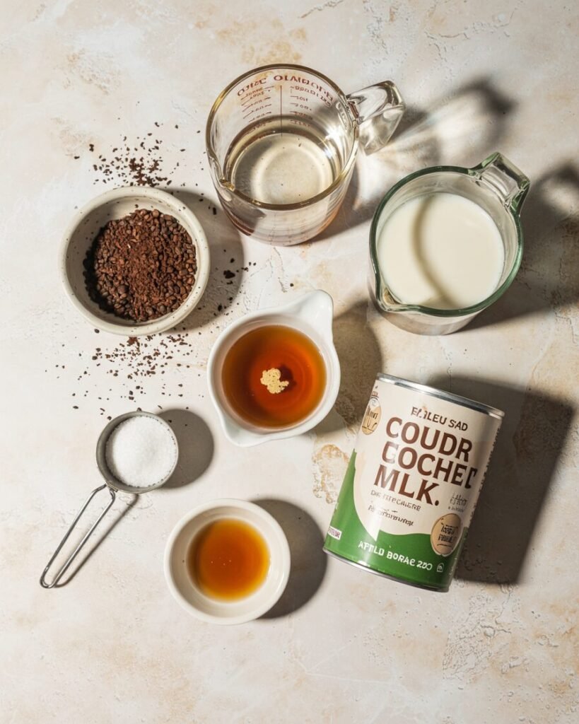 - Chocolate coconut: Add 1 tsp cocoa powder to sweetened coconut milk, whisk until smooth.