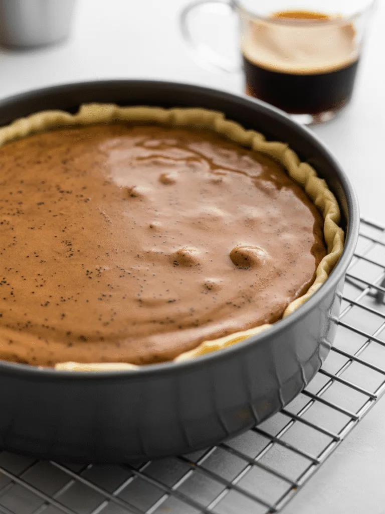 Final: 5 g espresso, slow cooling, overnight chill. Result: smooth, deep-flavored, crack-free slice with a firm yet creamy crumb.