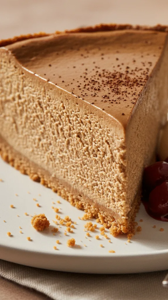 A creamy, crack-free coffee cheesecake with deep espresso flavor, a buttery digestive crust, and no water bath required. Baked low and slow, then cooled gradually to ensure a smooth, luxurious texture—perfect with chai or cold brew.
