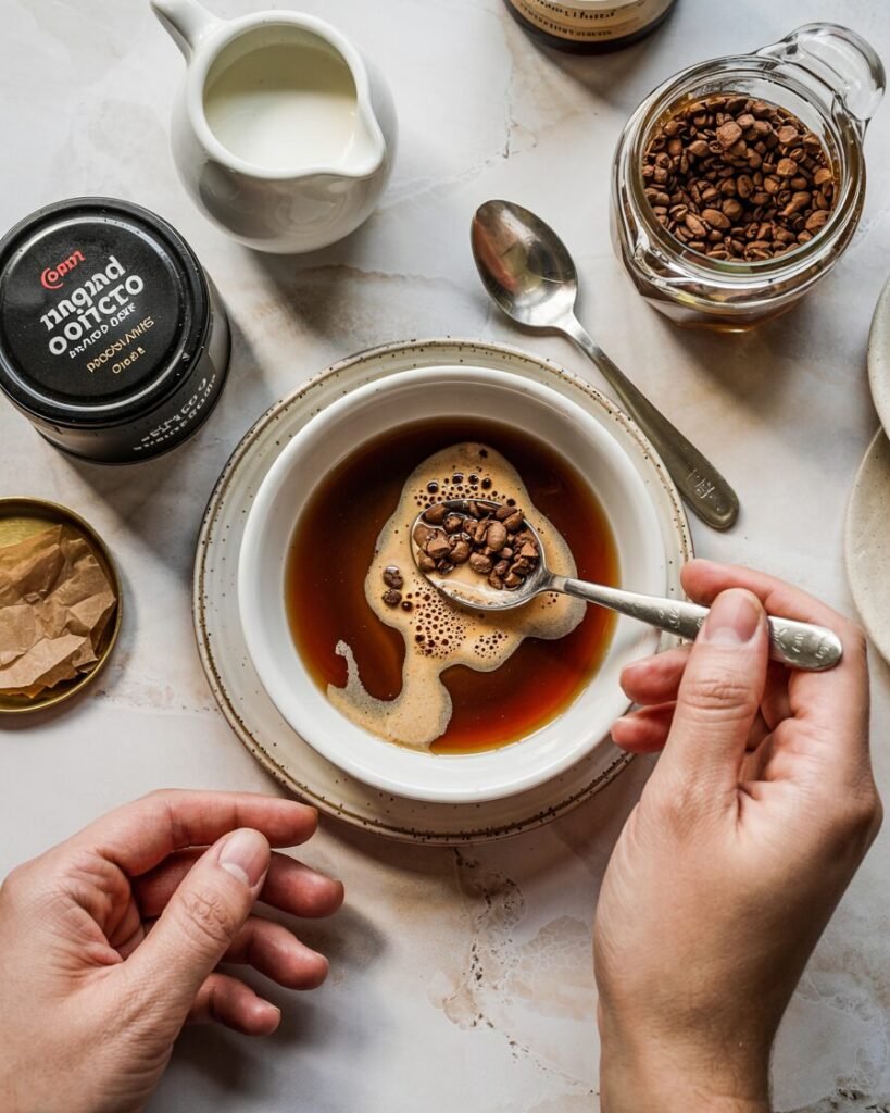 - Instant coffee granules — 8 g (2 tbsp) — Strong coffee flavor without adding extra liquid.