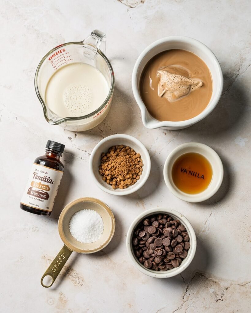 - Vanilla extract — 5 g (1 tsp) — Rounds out the coffee flavor.