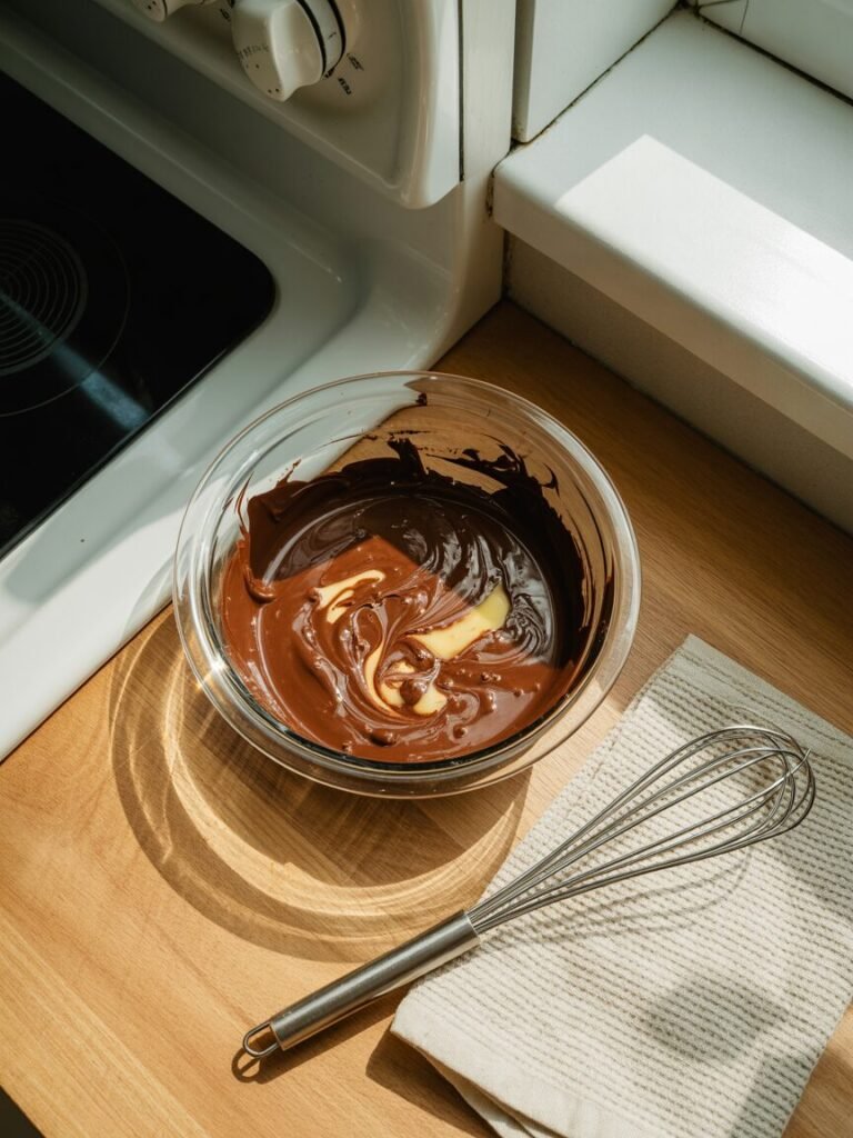 - Melt butter and chocolate in a microwave-safe bowl in 20-second bursts, stirring until smooth.