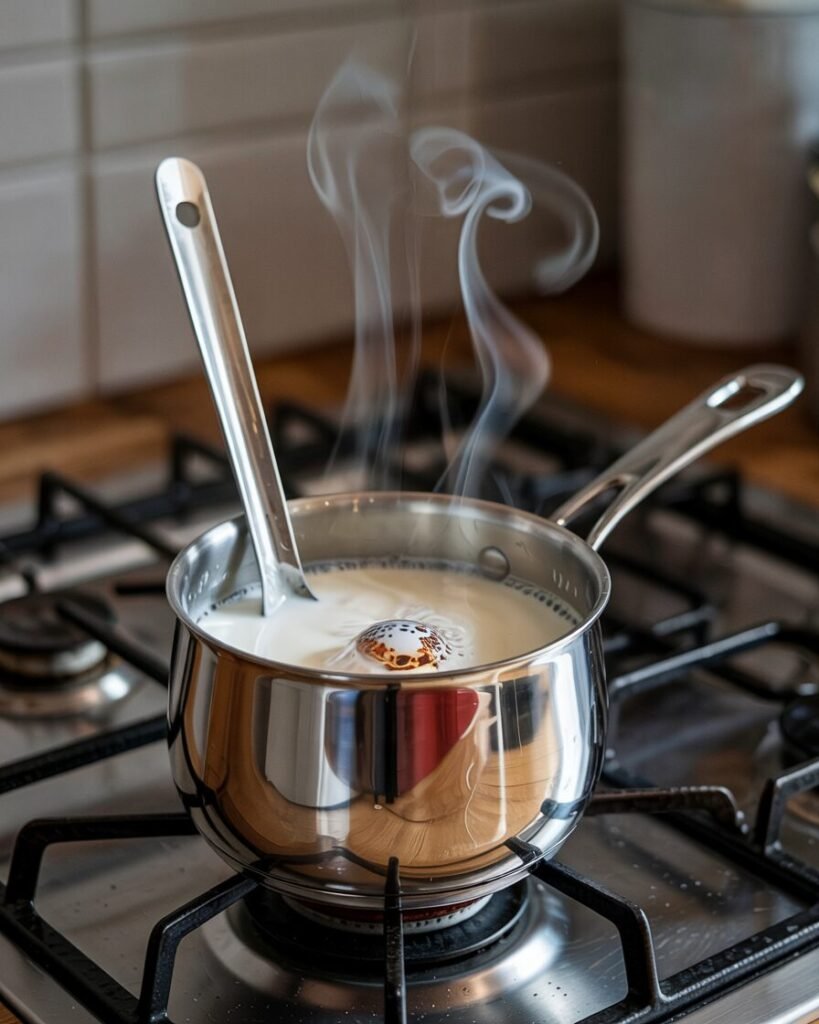 - Heat over medium‑low flame °C°C / °F°F, stirring often, until the milk is hot but not boiling (about 60–70°C / 140–160°F).