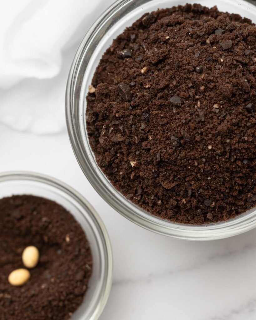 Place 36 Oreos (with filling) in a food processor and pulse until fine, sand‑like crumbs.