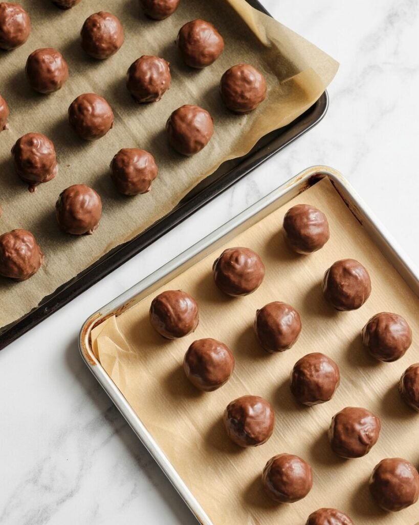Let truffles set at room temperature 20–30 minutes, or chill 10–15 minutes for a firmer shell.