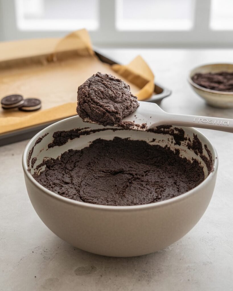 Pro tip: If dough sticks, lightly dust with reserved Oreo crumbs, not flour.