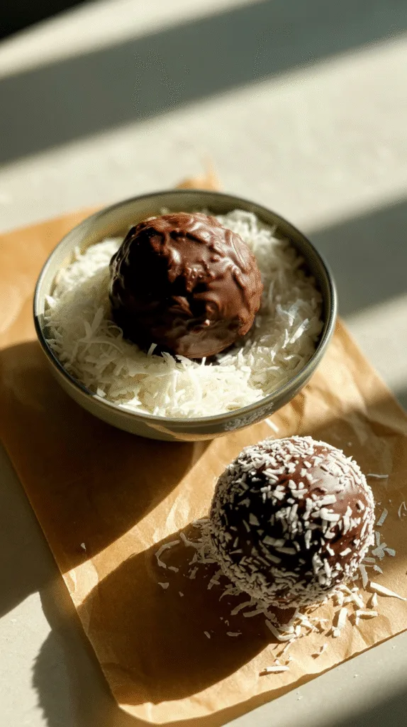 - Roll each ball in desiccated coconut or cocoa powder. Place on parchment‑lined tray.