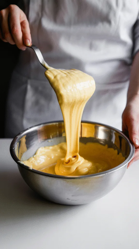 - Visual cue: When lifted, batter should ribbon back into the bowl and disappear into the surface within 10–12 seconds. Too stiff = cracked shells. Too runny = flat shells.