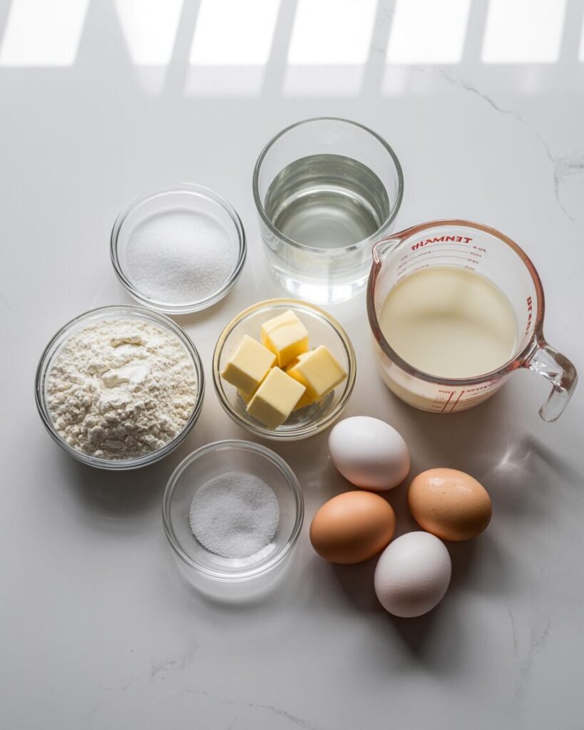 For the Choux Pastry (20–22 profiteroles)