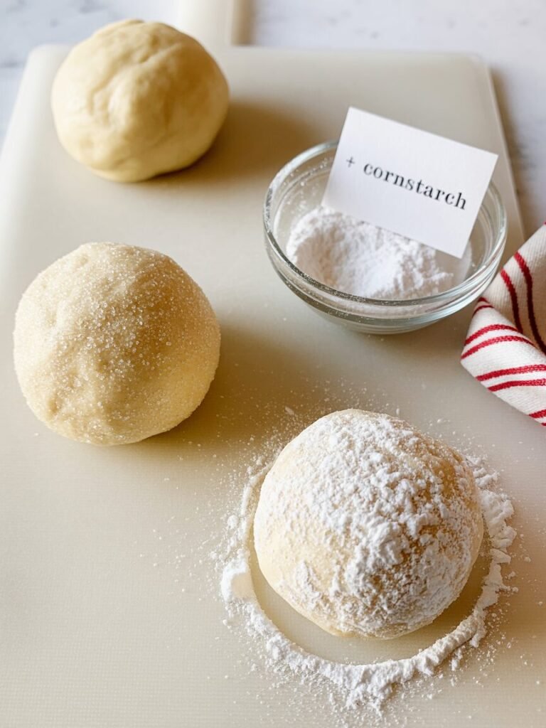 • Cue: Dough scoops cleanly and rolls without sticking heavily to hands.