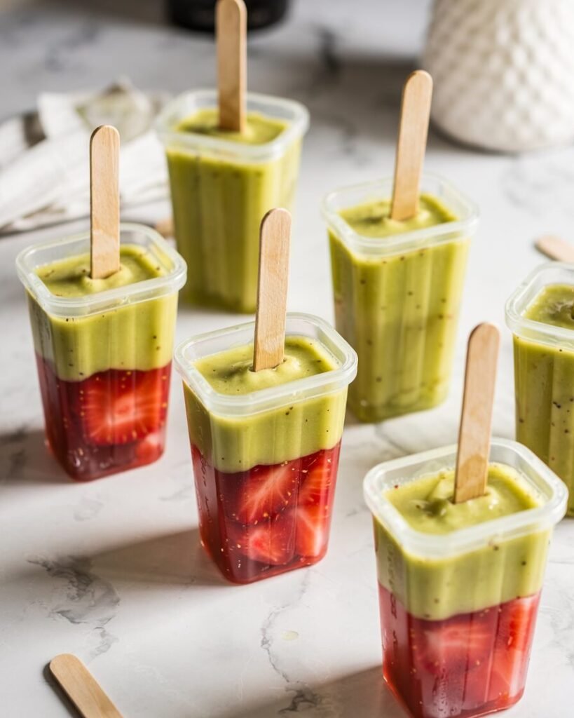 The result? Smooth strawberry pops layered with tangy kiwi, lightly sweetened and perfectly icy-creamy without being rock hard. These popsicles are beginner-friendly and require no special equipment beyond a blender and molds.