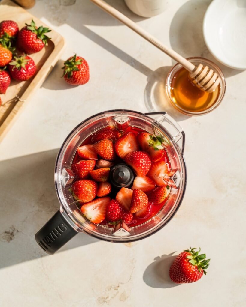 - Tropical version: Replace strawberries with mango puree.