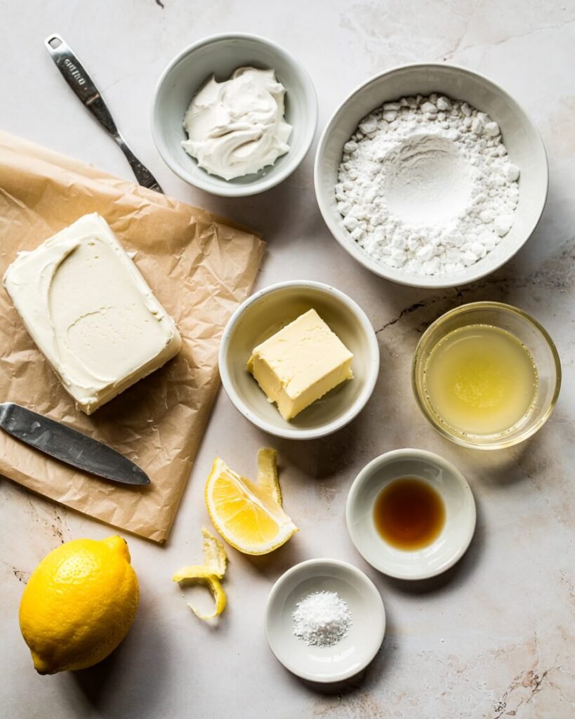 Fresh lemon juice adds brightness but also slightly tightens the frosting structure because acidity interacts with dairy proteins. That’s why a small amount goes a long way.