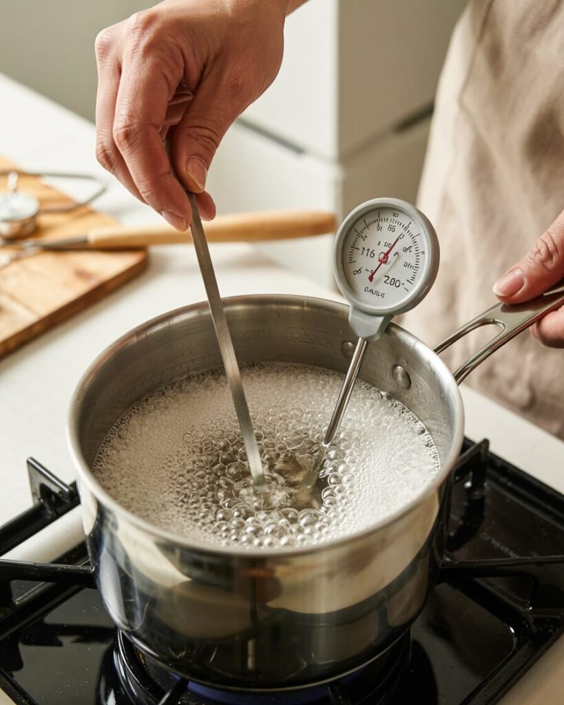 Visual cue: The syrup should bubble steadily and appear slightly thicker than water.