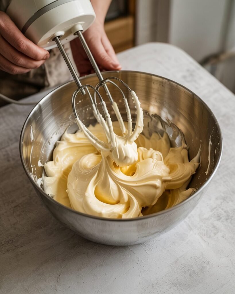 - Beat butter on medium speed for 2–3 minutes until pale and fluffy.
