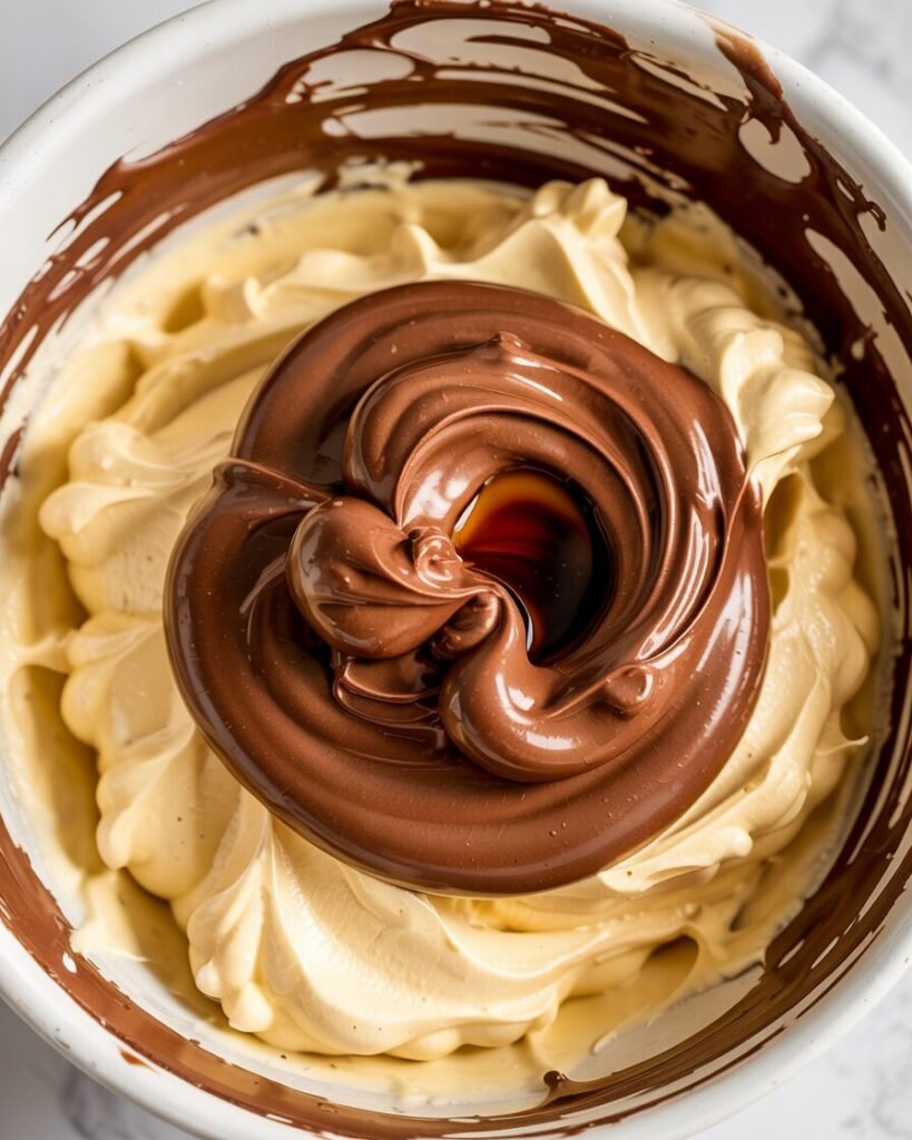 - Mix in bloomed espresso and 1 tsp vanilla extract.