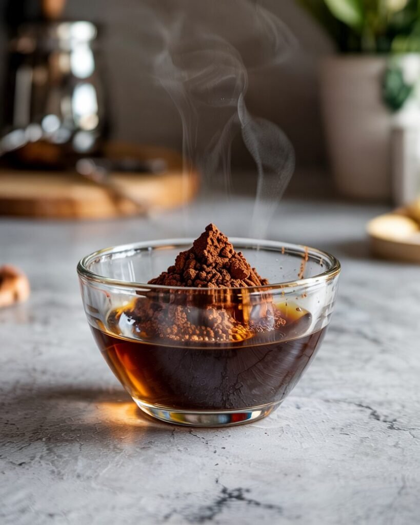 - Bloomed espresso powder: Dissolving instant coffee in a small amount of hot water releases its aromatic compounds, preventing gritty texture and bitter flavor.