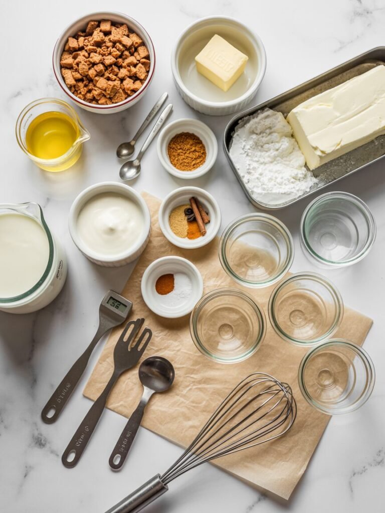- Gingerbread cookies (crisp), crushed — 200 g — about 2 cups — crunchy “crust” layer + spice base