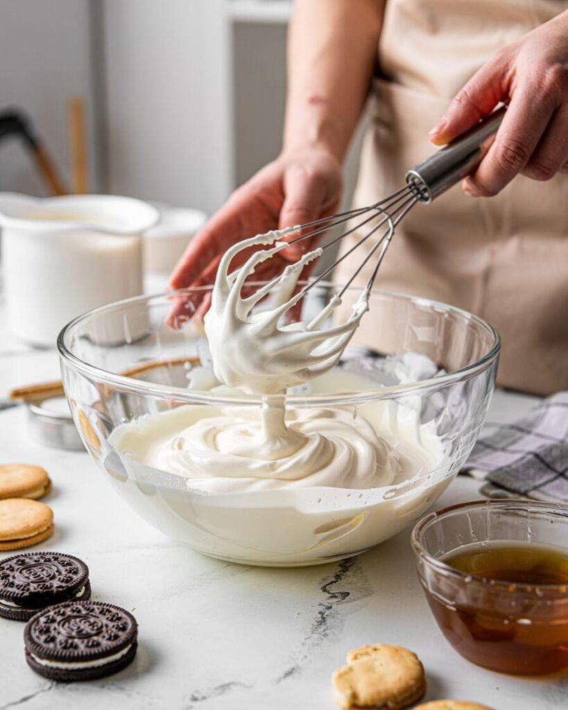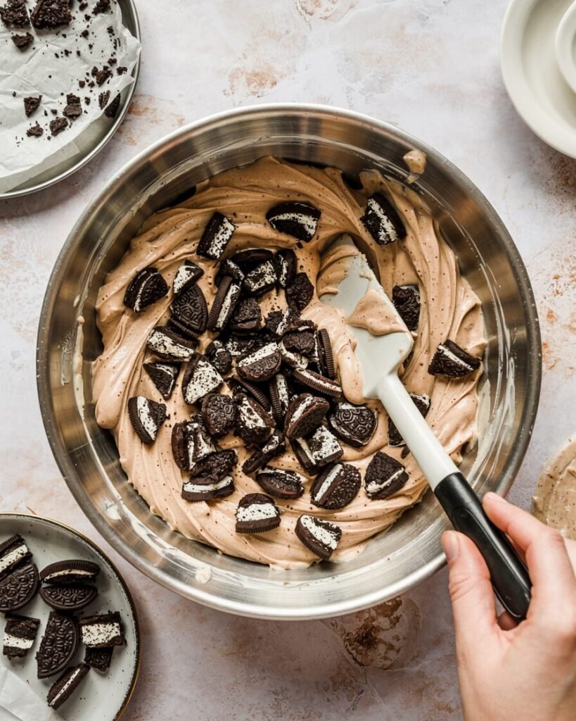 The combination of whipped cream, condensed milk, and crushed Oreos produces a texture that’s smooth, rich, and packed with cookie flavor.