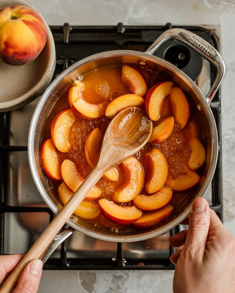 - Lemon juice — 5 g (1 tsp) — brightens peach flavor