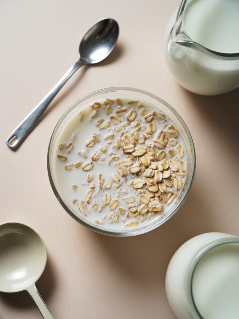 - Milk (dairy or plant-based) — 180ml (3/4 cup) — for liquid base and hydration