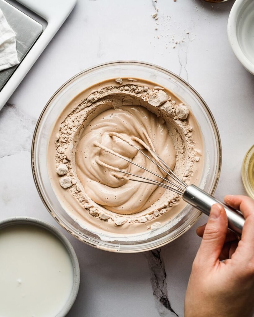 Avoid adding too much liquid yet — this step is only to remove lumps.