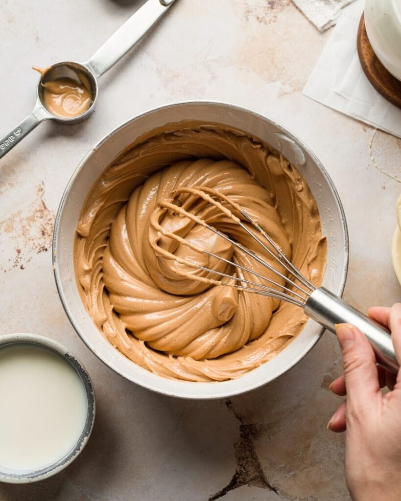By hydrating the protein powder first and balancing it with peanut butter and yogurt, you get a frosting that spreads smoothly, holds soft peaks, and delivers a rich nutty flavor.