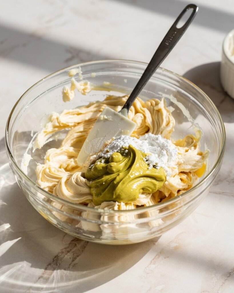 Second, pistachio paste adds fat and flavor. Nuts contain natural oils that enhance richness while helping the frosting stay smooth. Because pistachios are naturally slightly sweet, they also reduce the need for excessive powdered sugar.