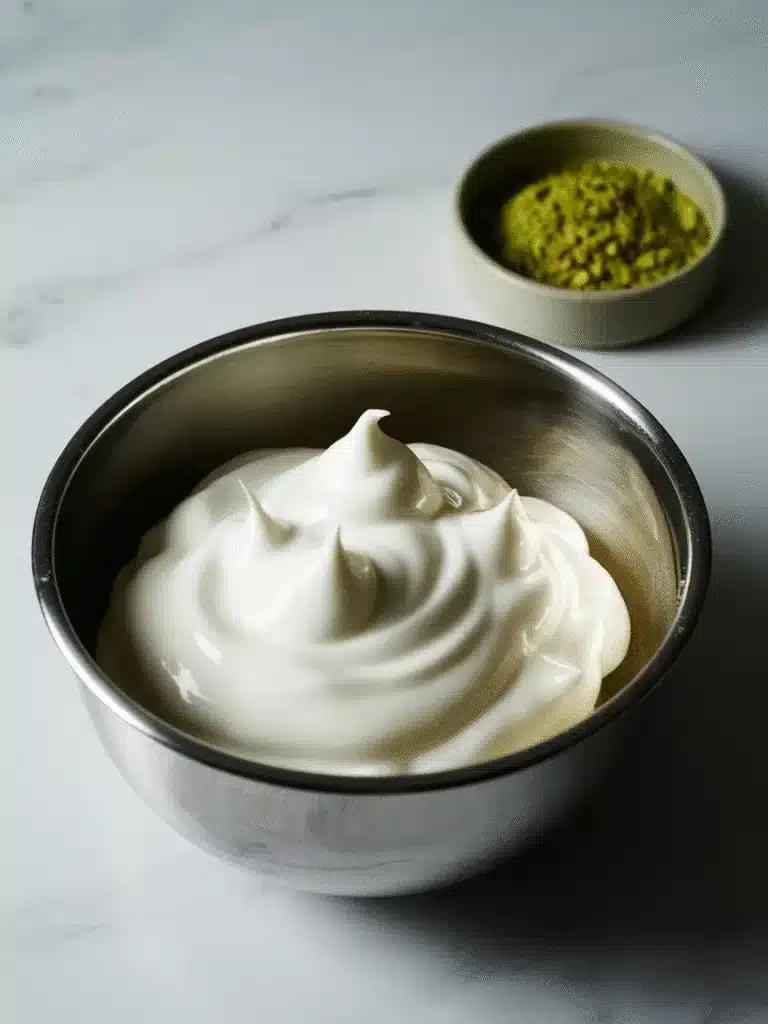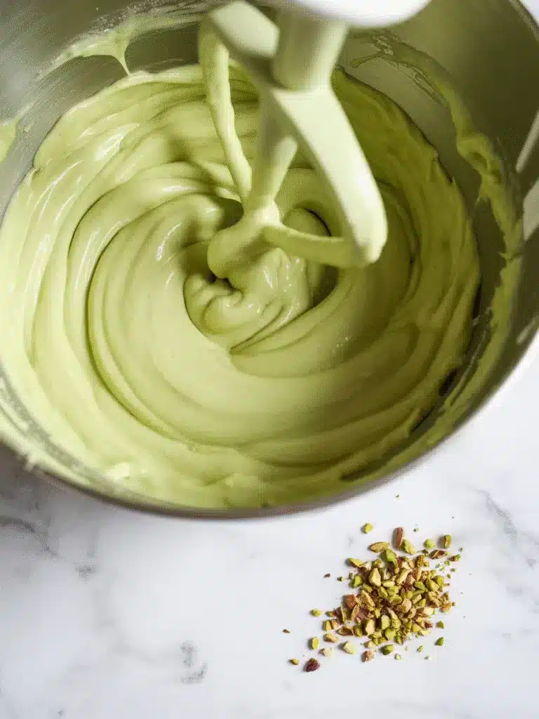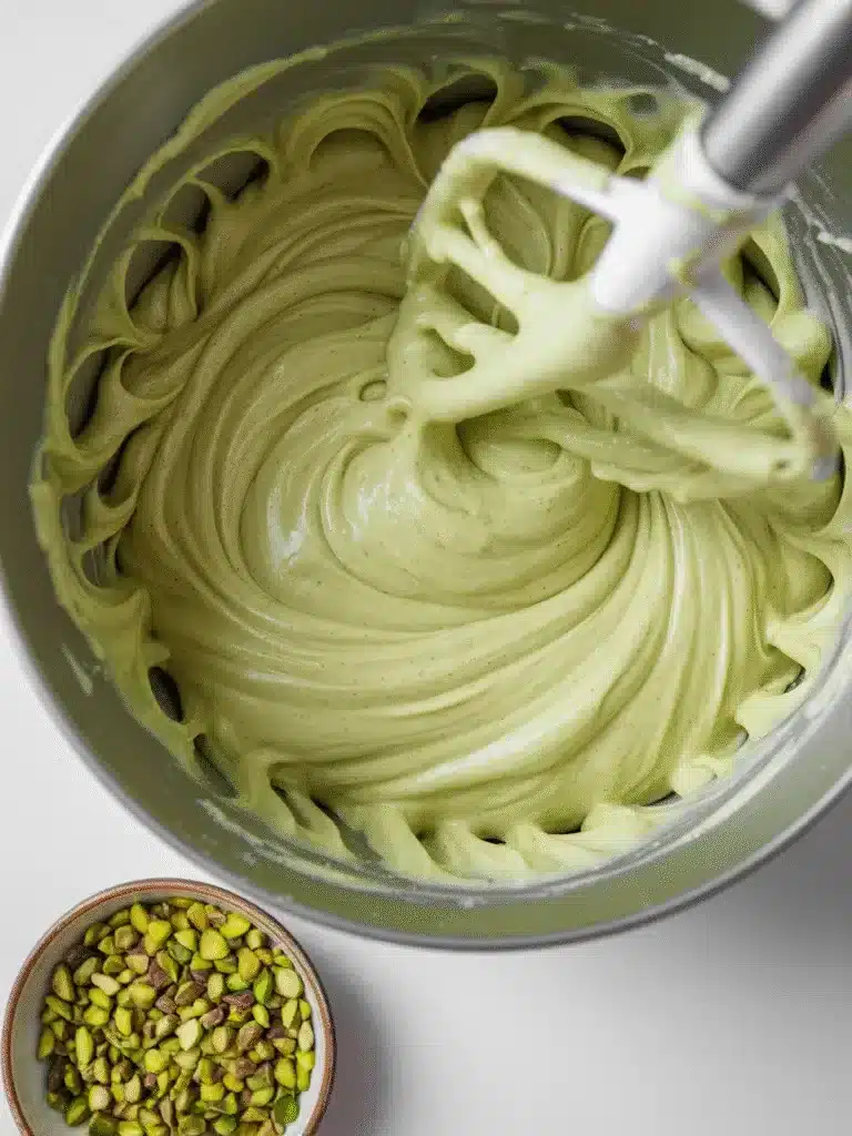 Visual cue: Thick but smooth batter with a subtle pale pistachio hue; do not overmix. - Step 6: Whip egg whites