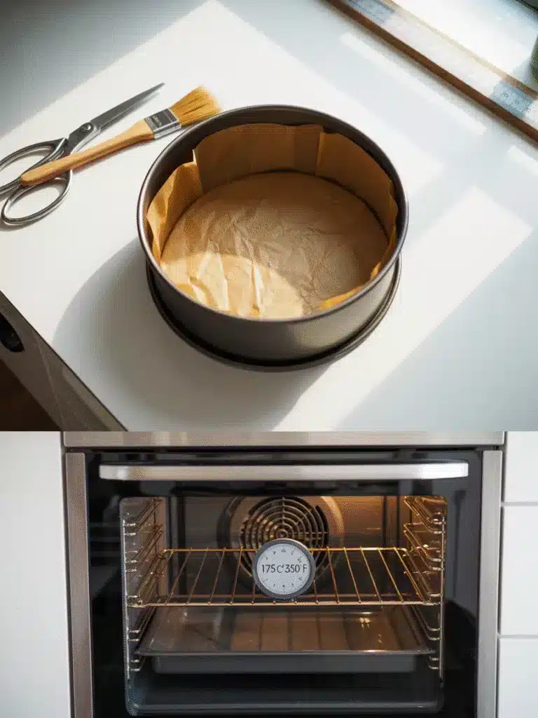 Line pan bottom with parchment. Grease sides. Preheat oven to 175∘C175∘C (350°F). Place rack in center. Pro tip: Use an oven thermometer — many OTGs run hot.
