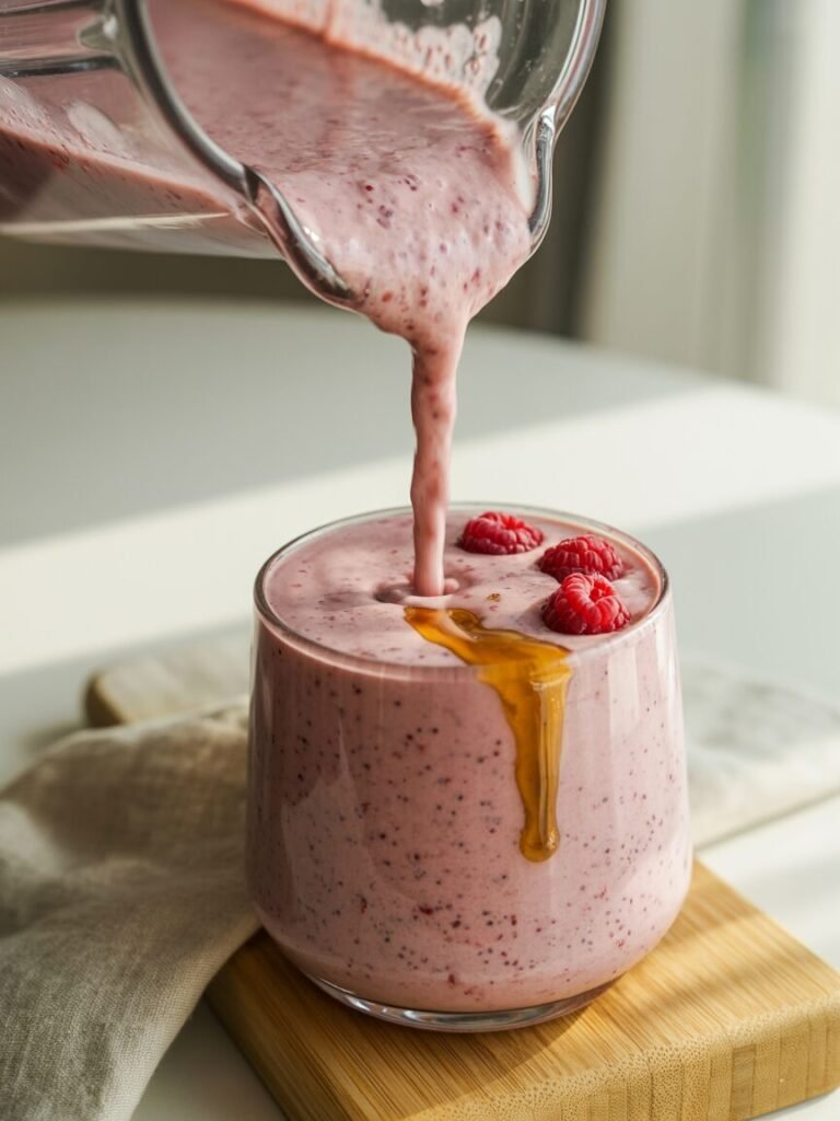 Most smoothies end up either too thin or too icy because the liquid overwhelms the fruit, or because we rely on ice to chill it instead of frozen fruit. This recipe flips that by using frozen banana and frozen raspberries as the base, so the smoothie is naturally thick and cold.