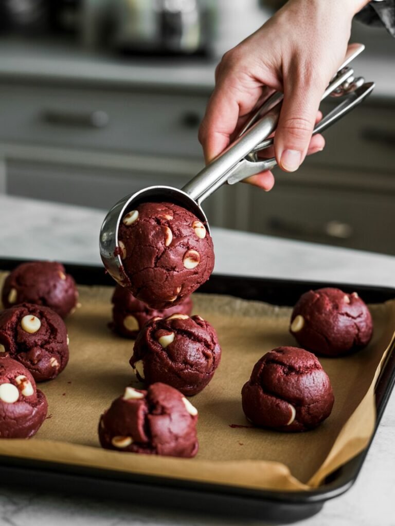 The secret behind perfect red velvet cookies lies in the balance of ingredients and technique. Cocoa powder provides a mild chocolate flavor without overpowering the cookie, softened by tenderizing butter and brown sugar to create chewiness. Acid from vinegar or buttermilk reacts with baking soda, leavening the dough safely while preserving the bright red color with the help of food coloring. Using room temperature eggs aids better emulsification for even crumb texture, while chilling the dough stabilizes fat crystals ensuring minimum spread and a chewy center. These science-backed steps make this recipe reliable and easy to replicate for home bakers.
