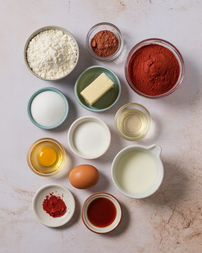 Natural cocoa is slightly acidic. Combined with vinegar and buttermilk, the batter becomes softer and more open, creating that signature velvety texture. - Oil keeps moisture, butter adds flavor.