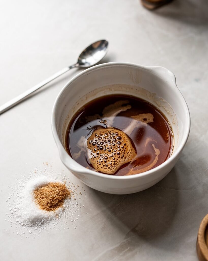 - Whisk vigorously for 30–45 seconds until the sugars are mostly dissolved.