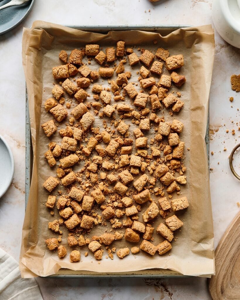 Mix crushed graham crackers, melted butter, and brown sugar. Spread thinly and bake 8–10 minutes, until golden and fragrant.